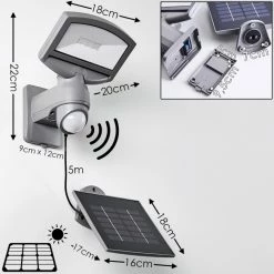 Hofstein Larvik Solar-Außenwandleuchte LED Grau, 1-flammig, Bewegungsmelder