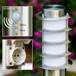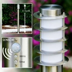 Hofstein Tunes Wegeleuchte Edelstahl, 1-flammig, Bewegungsmelder