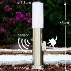 Hofstein Caserta Sockelleuchte Edelstahl, 1-flammig, Bewegungsmelder